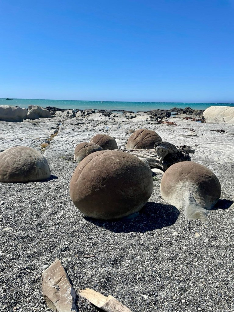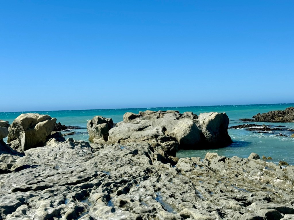 We went into Blenheim for a quick mooch about the shops, then back into the car for our journey South to Kaikoura. On our way we found the ward beach boulders before getting to our lovely apartment complete with real cooker for some home cooked food and a game of cards to unwind ready for a long day of Whale watching the next day