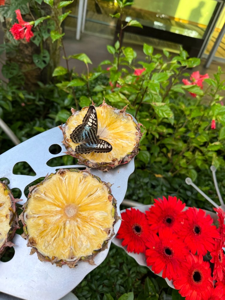 Singapore has got to be one of the most beautiful airports I have ever been to, it has a waterfall right in the centre and a butterfly garden!