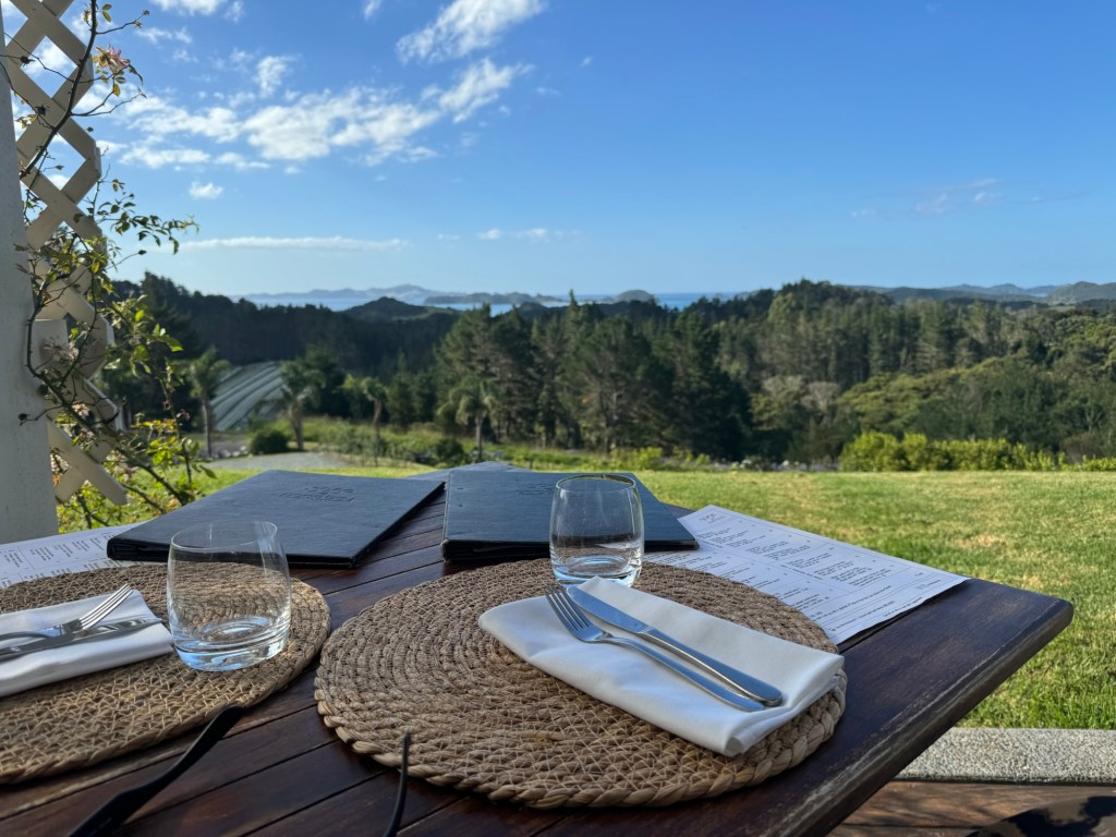 For our evening meal that day the hotel arranged a transfer Paroa Bay Winery. This gorgeous restaurant is set on a beautiful estate overlooking the Bay of Islands, with panoramic views of the water and surrounding landscapes. The location itself offers a peaceful and scenic environment for wine lovers to enjoy.