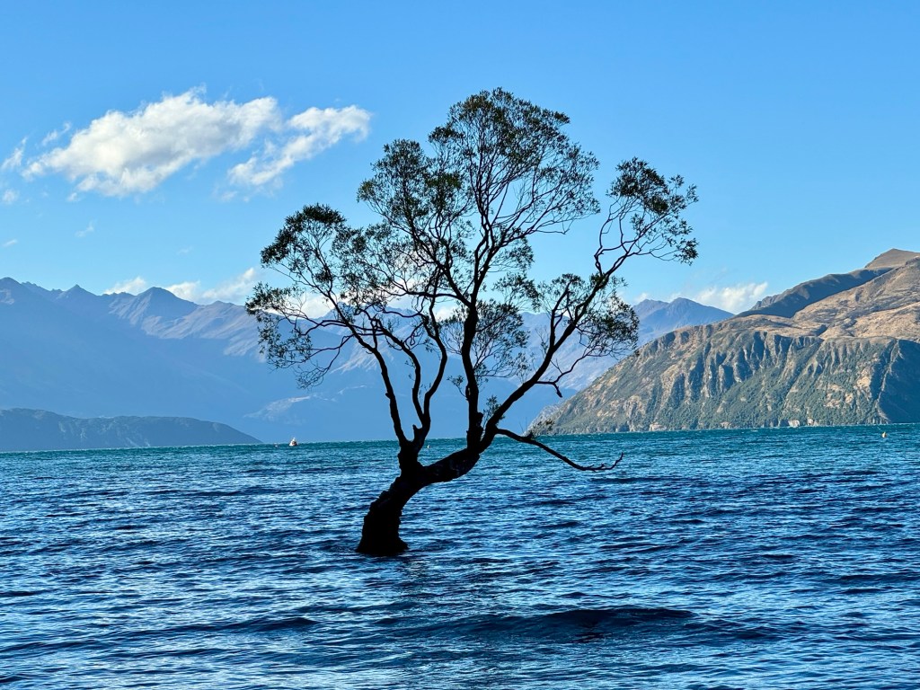 Early start for a wet drive through the mountains on our way from Franz Joseph to Wanaka. However once we got here the sun was shining. Pretty windy but we still managed to get on a boat and see the lake and the famous Wanaka tree.